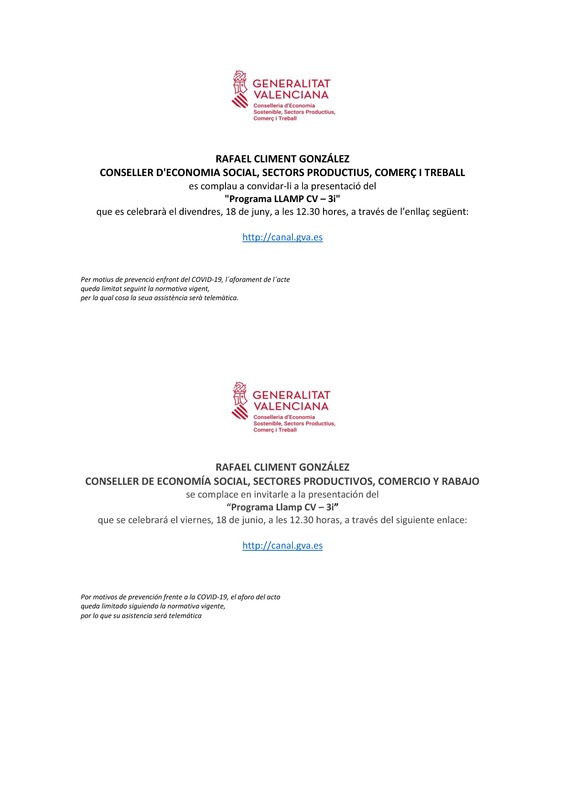Para ver el evento en streaming, a través del enlace siguiente: http://canal.gva.es/