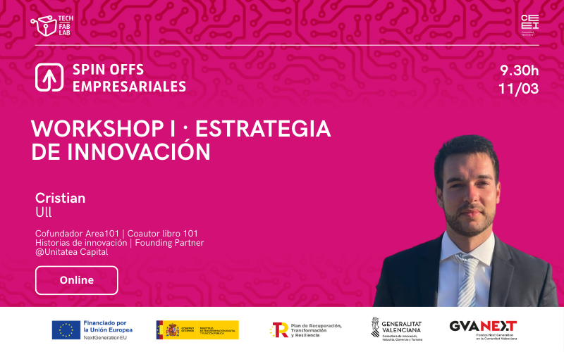 SpinOff está enmarcado en el programa Tech FabLab de la convocatoria RETECH “Redes de Emprendimiento Digital”, financiada por el Plan de Recuperación, Transformación y Resiliencia del Ministerio para la Transformación Digital y Función Pública a través de fondos europeos Next Generation EU. Se trata de una de las actuaciones que la Dirección General de Innovación ha activado en colaboración con la Red CEEI CV con el objeto de capacitar en tecnologías habilitadoras digitales y dinamizar la creación y el crecimiento empresarial mediante la innovación.