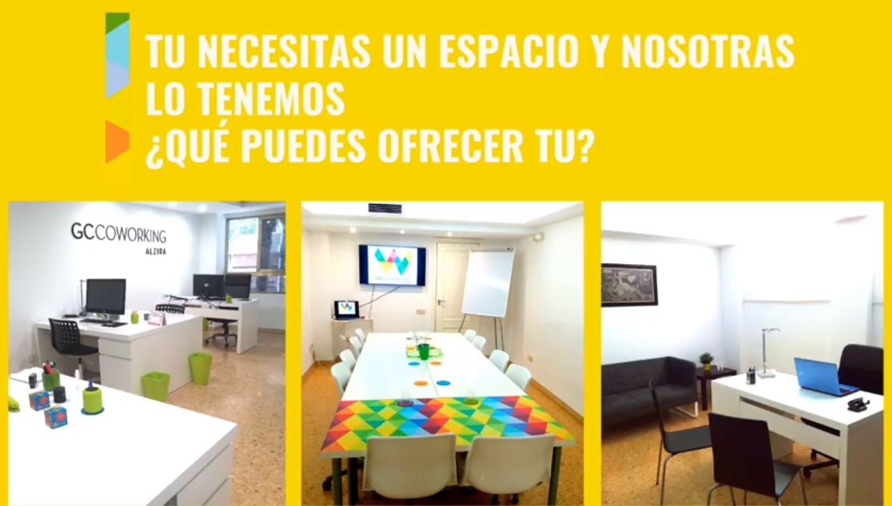 Si necesitas un espacio de trabajo para desarrollar tu actividad y no puedes pagarlo en esta momento, quizá puedas ofrecernos alguno de tus servicios. Llámanos y hablamos. En estos momentos nos tenemos que ayudar entre todos para seguir adelante. Telf . 96 107 66 00 o  [email protected]