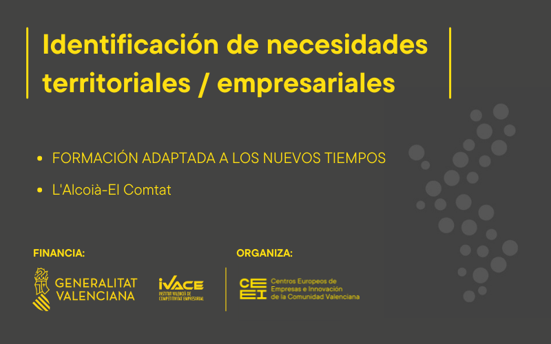Mancomunitat de Municipis de l'Alcoià i el ComtatGAL Rural Muntanya d'AlacantAEDL Ajuntament de CocentainaCámara de Comercio de AlcoyJovempa Alcoià Comtat i FoiaInstituto Ideas. Campus Alcoi. Universitat Politècnica de ValènciaAITEXAjuntament d'AlcoiAEDL Ajuntament de MuroAEDL Ajuntament BanyeresActaio | Acord Territorial per a l’Ocupació i el Desenvolupament Local Alcoi · Ibi · OntinyentFundación Novaterra