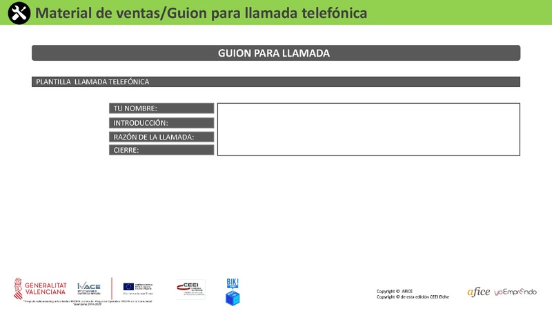Descargar archivo (.pdf 497Kb)Ficha de trabajo en blanco de la fase MATERIAL DE VENTAS perteneciente al programa BIK Startup. Puedes ampliar la información de esta ficha en el Manual de Ventas y el resto de materiales prácticos.