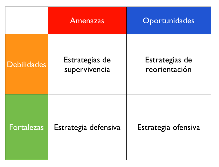 • Debilidades + Amenazas= estrategia de supervivencia (limitaciones).