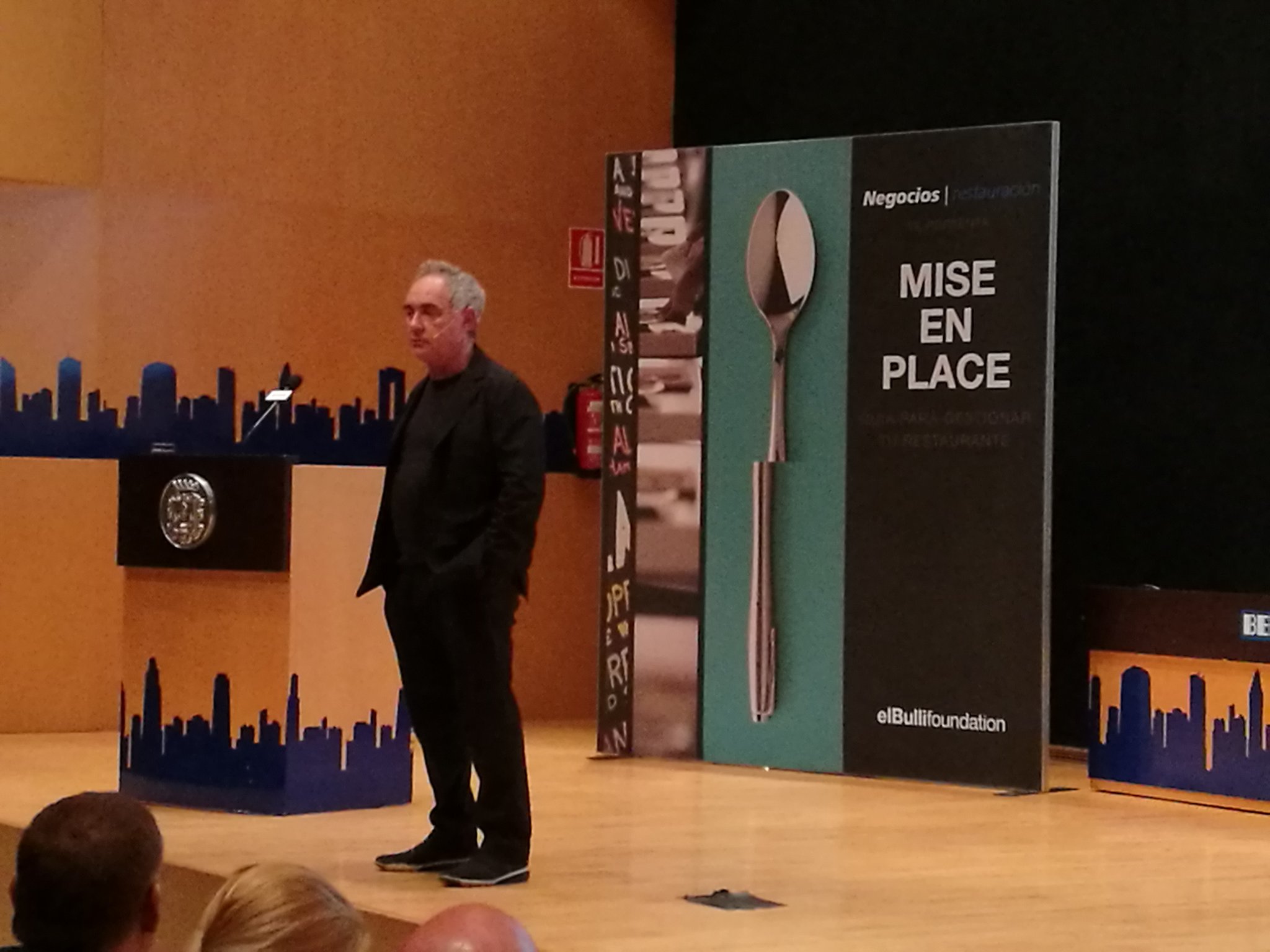 Faltaban 20 minutos para el inicio del evento y decenas de personas ya hacían cola a las puertas del salón de actos. En el hall del Ayuntamiento de Benidorm se respiraba expectación y se percibía esa emoción que sentimos los humanos cuando vamos a ver en persona a alguien a quien admiramos: bien sea cantante, estrella de cine o el mejor chef de la década. A medida que los asistentes se acreditaban, y se les hacía entrega del libro Mise en Place, el espacio se iba tiñendo del intenso color aguamarina de sus tapas. Entre sus páginas, el lector podía encontrar un colorido paseo por la gestión empresarial acompañado de imágenes.