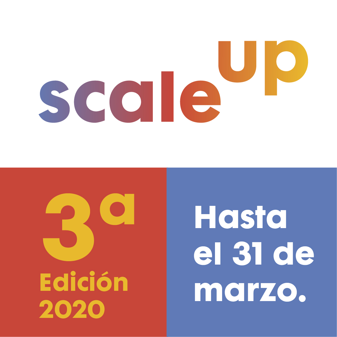 Descargar archivo (.pdf 167Kb)SCALE UP es un programa exclusivo de escalabilidad empresarial que permitirá convertir tu negocio en una empresa con alto potencial de crecimiento. El programa tiene una duración de 9 meses de abril a diciembre de 2020.