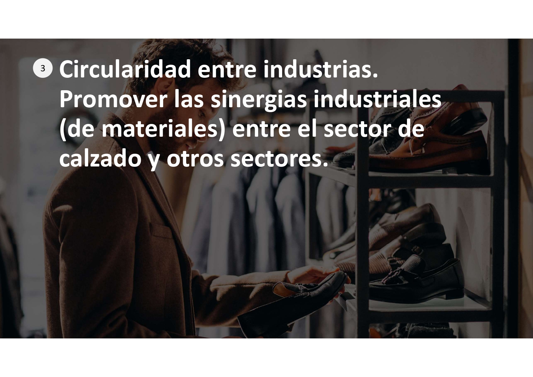3."Circularidad entre industrias. Promover las sinergias industriales (materiales) entre el sector del calzado y otros sectores":