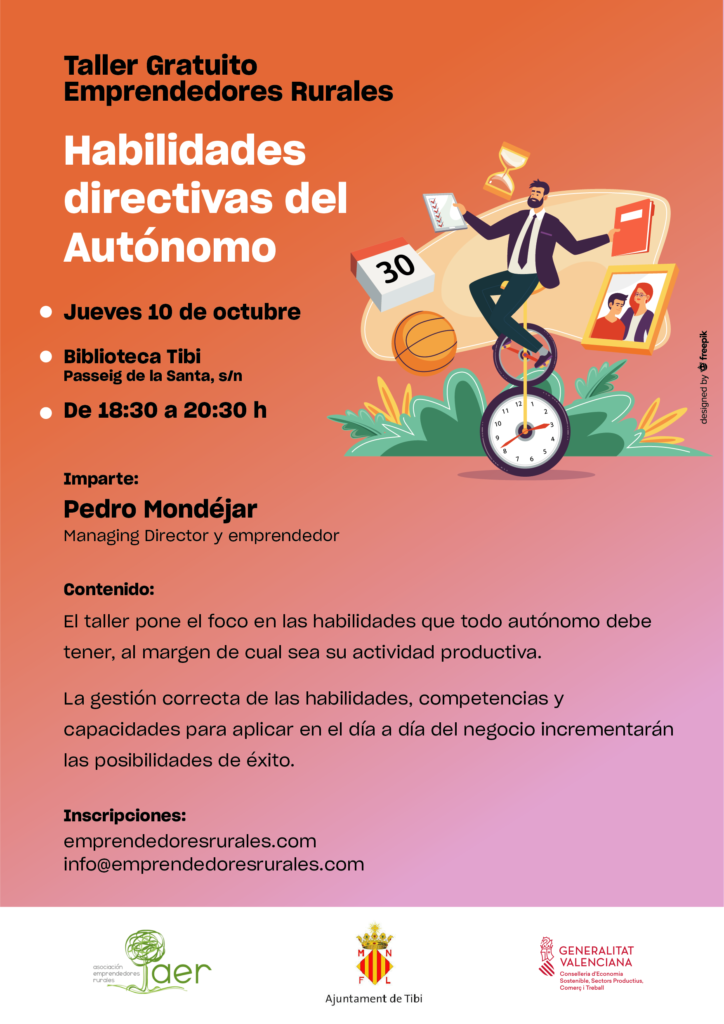 Seguimos con el programa de actividades formativas en entornos rurales, en esta ocasión, en Tibi, y será Pedro Mondéjar quien imparta su taller sobre habilidades del autónomo.