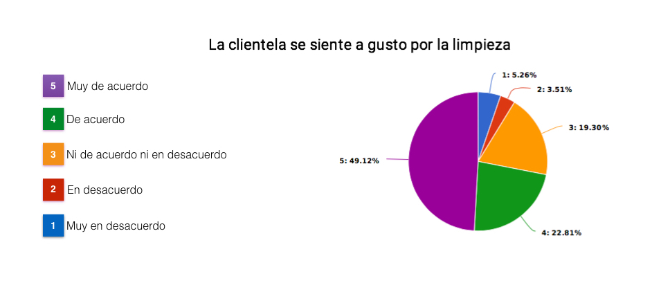 En el gráfico podemos comprobar cómo el 79% de los encuestados está de acuerdo o muy de acuerdo con que la limpieza en el entorno laboral influye en su estado de su salud, mientras que casi un 85% admite que influye positivamente en su rendimiento.