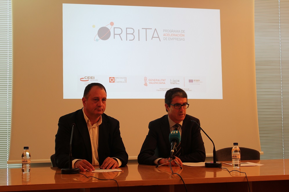 El Centro Europeo de Empresas Innovadoras de Castellón ha acogido hoy jueves la presentación del nuevo Programa de Aceleración Empresarial Órbita, impulsado conjuntamente por el centro y por la Diputación de Castellón. Basado en la identificación de proyectos de alto potencial y en el apoyo a los mismos para consolidar su crecimiento, facilitándoles posteriormente el acceso a la financiación, el programa ha sido presentado por el diputado de Promoción Económica, Salvador Aguilella, y el director de CEEI Castellón, Justo Vellón.