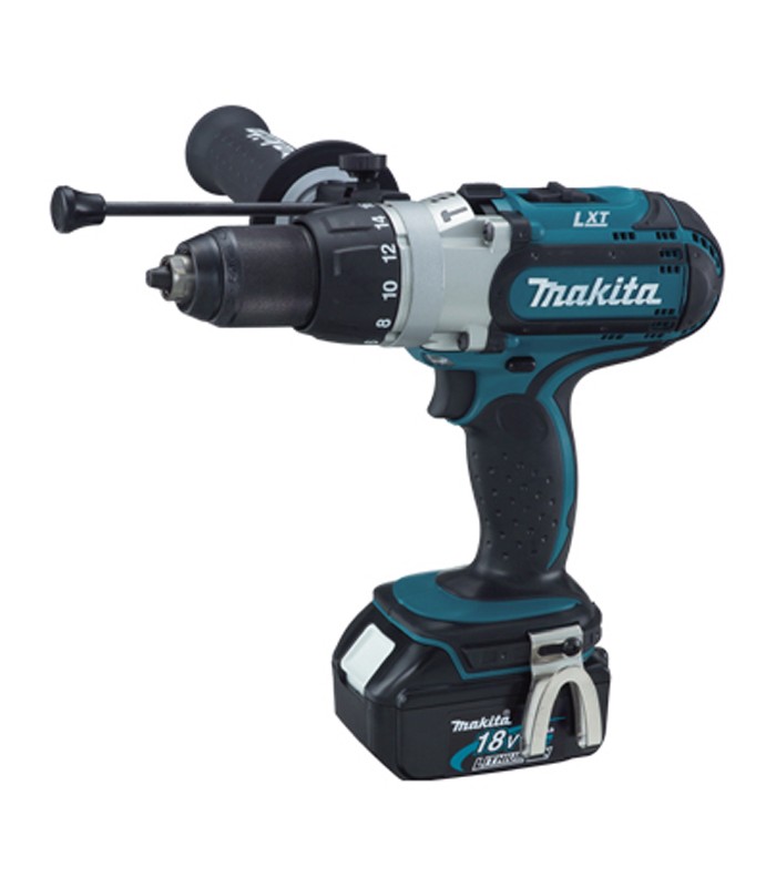 Taladro percutor de la marca Makita combinado de batería de 18v 3 Amp. Al adquirir este producto se incluye, además del taladro percutor, un cargador rápido y 2 baterías.