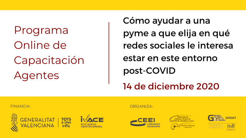 En este taller te daremos las claves para que puedas ayudar a las Pymes, los comercios y los profesionales a los que apoyas en tu día a día a seleccionar en qué redes sociales les interesa más estar.