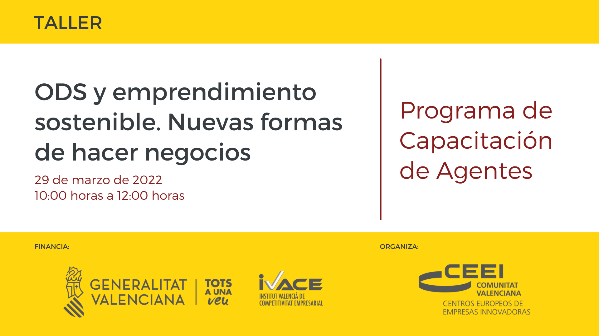 Esta acción se enmarca dentro del Programa de Fortalecimiento de agentes del ecosistema de emprendimiento de la Comunidad Valenciana, actividad promovida y financiada por la Generalitat Valenciana, a través del Instituto Valenciano de Competitividad Empresarial (IVACE), dentro de su política de apoyo al emprendimiento innovador.