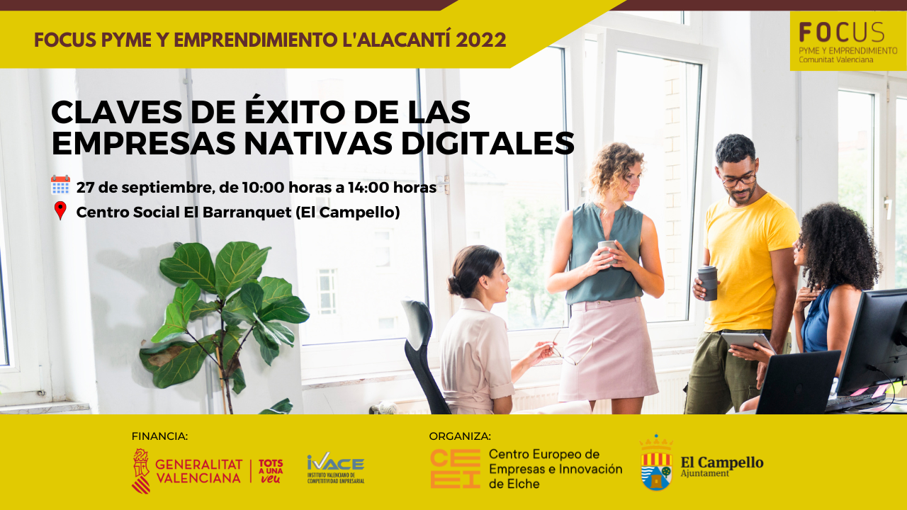 El evento Focus Pyme y Emprendimiento L´Alacantí 22, tendrá como protagonistas principales a las empresas nacidas digitalmente en la comarca, partiendo de cuál es su realidad tecnológica y los retos que se plantean en su actividad diaria. Además, mostraremos las estrategias para emprender digitalmente y los modelos de negocio que mejor funcionan, conociendo de primera mano empresas Nativas Digitalesque han sido capaces de adelantarse a los cambios necesarios en la propia definición de su operativa.