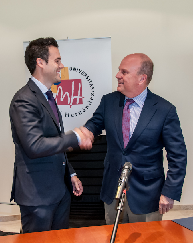 Imagen de la rueda de prensa sobre el Anuncio de Forest Chemical Group de acceder al Mercado Alternativo Bursátil, conjuntamente con el Conseller de Economía de la Generalitat Valenciana D. Máximo Buch y la Universidad Miguel Hernández.