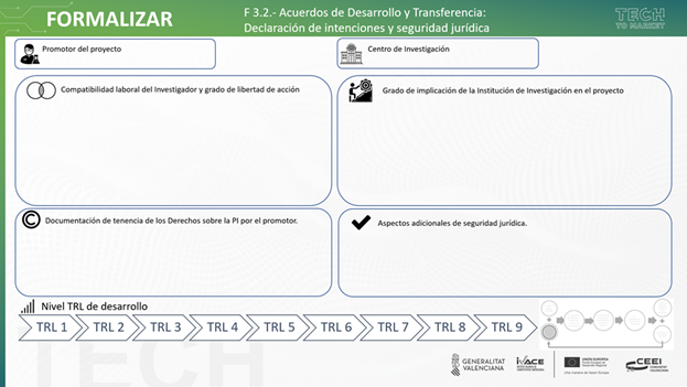 - Que el objetivo final de esta Metodología es conseguir que los agentes del ecosistema que generan conocimiento científico tangible, independientemente del sector en el que desarrollen su actividad, puedan conocer y aplicar un método sistemático de transferencia de dicho conocimiento al mercado, independientemente de la fórmula final adoptada (spin-off, spin-out, joint ventures, contrato de co-desarrollo,...).