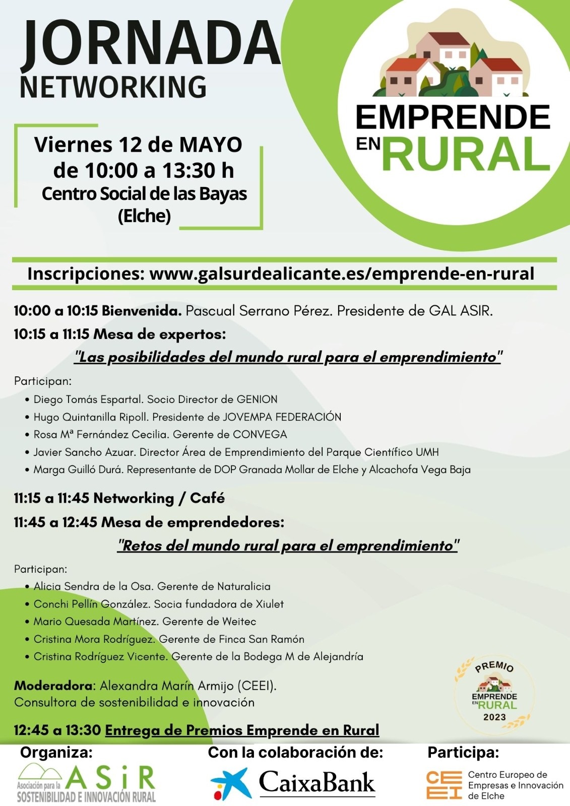El próximo 12 de mayo tendrá lugar una Jornada – Networking que pondrá el colofón al Programa Emprende en Rural, promovido por Gal Asir y Caixabanc.