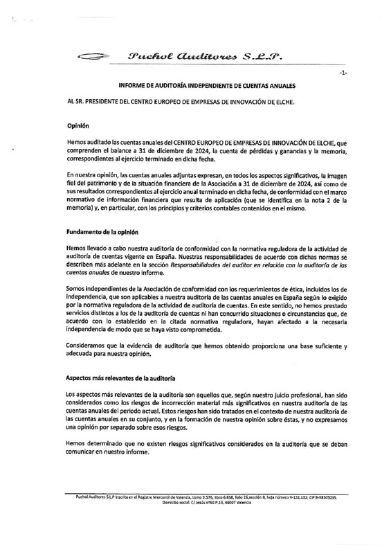 Cuentas anuales e informe de auditorías CEEI Elche 2024