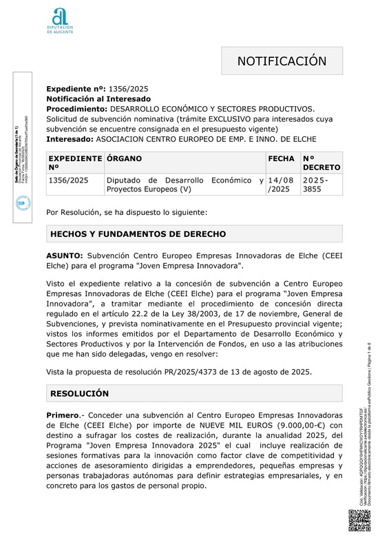 Subvención nominativa CEEI Elche-Diputación Alicante 2025