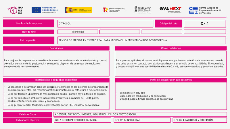 Reto: Sensor de medida en tiempo real para microvolúmenes en caldos de postcosecha