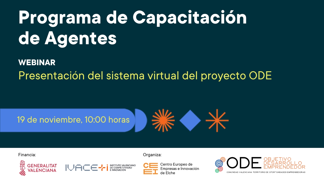 Esta acción se enmarca dentro del Programa de Fortalecimiento de agentes del ecosistema de emprendimiento de la Comunidad Valenciana, actividad promovida y financiada por la Generalitat Valenciana, a través del Instituto Valenciano de Competitividad e Innovación (IVACE+i), dentro de su política de apoyo al emprendimiento innovador.
