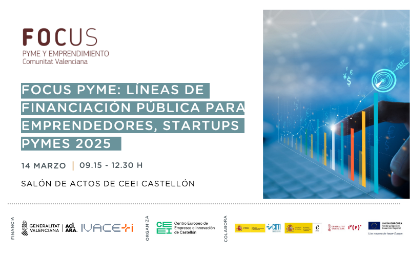Iniciativa de CEEI Castellón dentro de Focus Pyme y Emprendimiento, promovida y financiada por la Generalitat Valenciana, a través del Instituto Valenciano de Competitividad Empresarial (IVACE), dentro de su política de apoyo al emprendimiento innovador