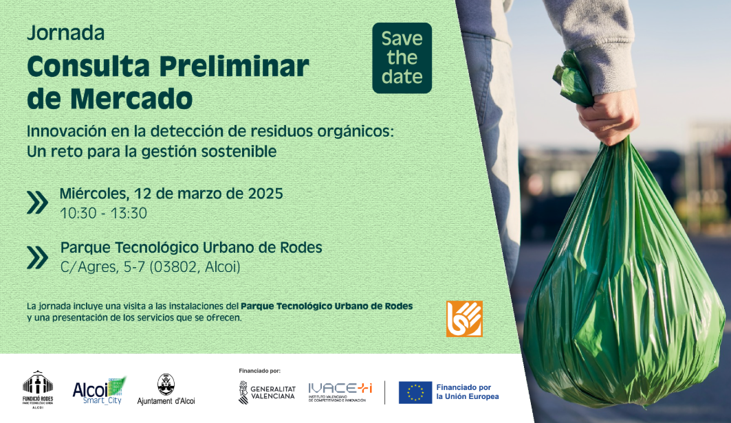Para ello, hemos organizado el día 12 de marzo a las 10:30h la jornada de presentación de la Consulta Preliminar del Mercado (CPM) en el Parque Tecnológico Urbano de Rodes (Alcoi-Alicante) orientada a la identificación de soluciones innovadoras ante el reto de innovar en la detección de residuos.