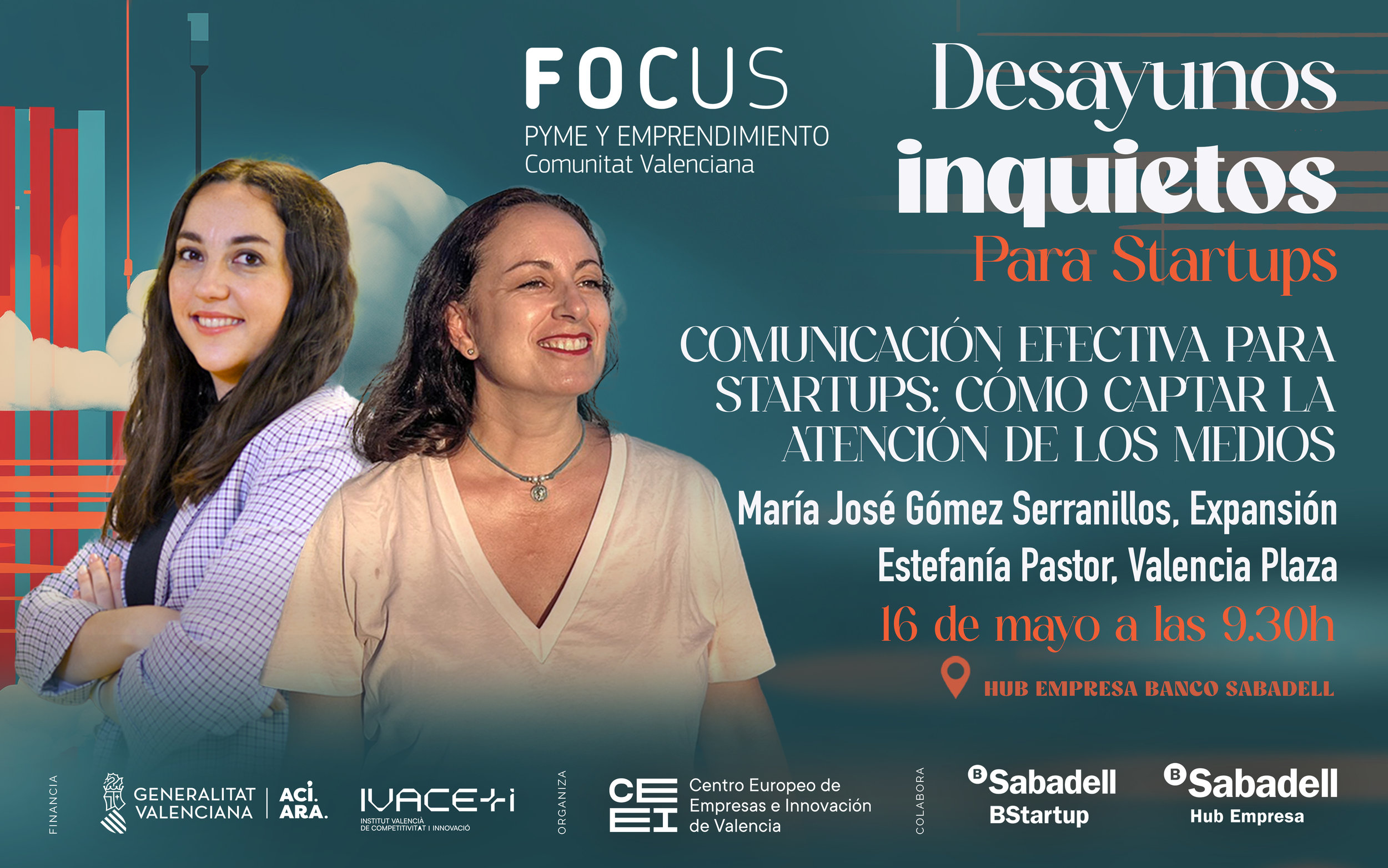 Desayuno Inquieto, es una iniciativa de CEEI Valencia, promovida y financiada por la Generalitat Valenciana, a través del Instituto Valenciano de Competitividad Empresarial e Innovación (IVACE+i), dentro de su política de apoyo al emprendimiento innovador y con la colaboración del Hub Sabadell.