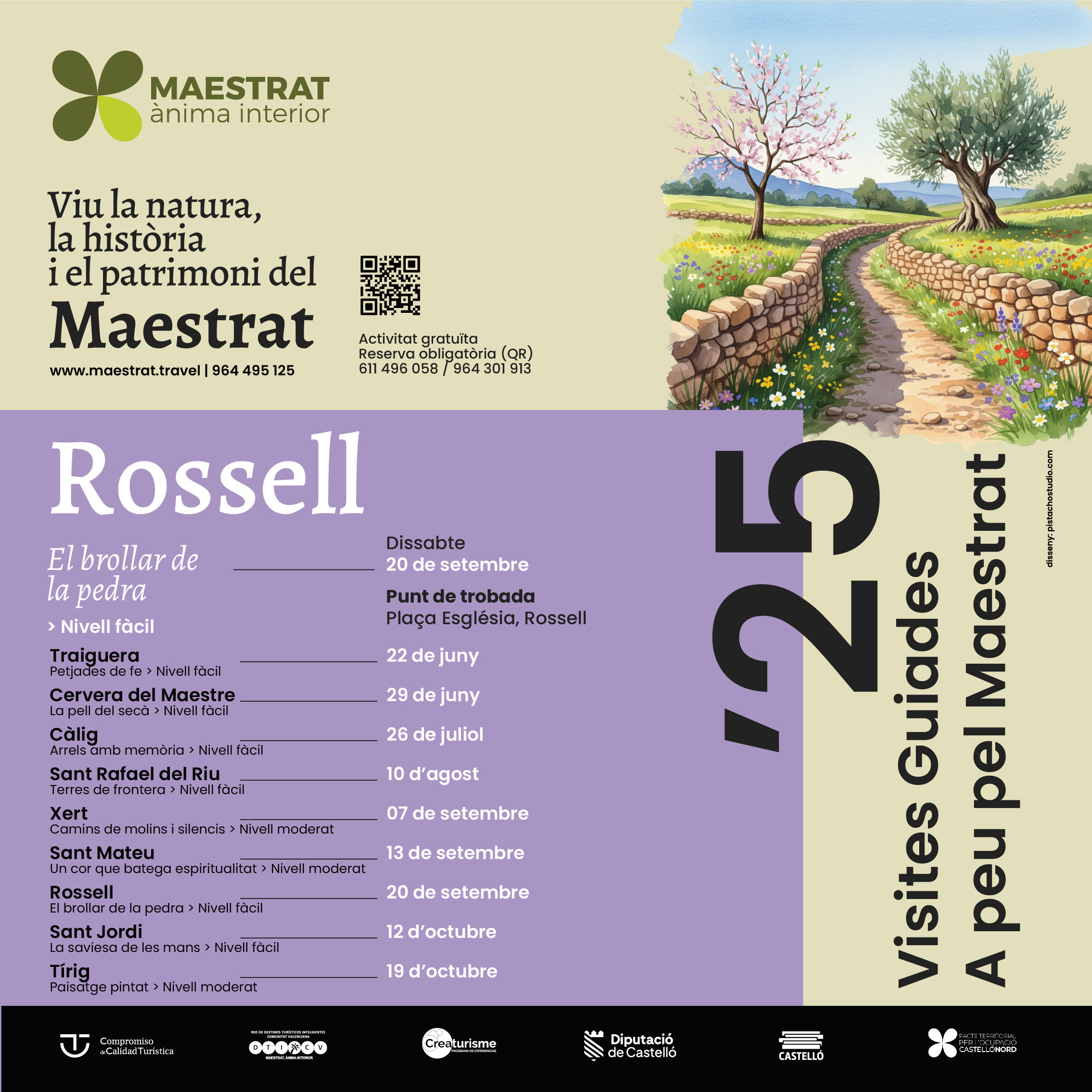 Enclavado en la entrada del Parc Natural de la Tinença de Benifassà, Rossell nos invita a realizar un paseo entre fuentes, barrancos y antiguos masos que reflejan la vida autosuficiente de otras épocas. En este entorno de gran biodiversidad, descubriremos paisajes modelados por el agua y la montaña, donde aún perduran los vestigios de un mundo rural en equilibrio con la naturaleza.