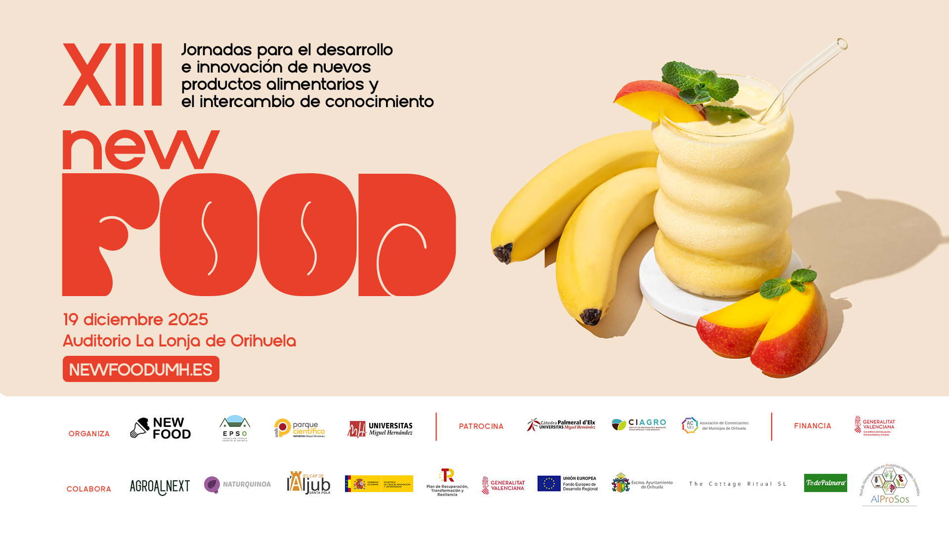 New Food cuenta, además, con la colaboración de los Departamentos de Tecnología Agroalimentaria y Economía Agroambiental, Ingeniería Cartográfica y Expresión Gráfica en la Ingeniería de la UMH, de la Red de Alimentos ricos en proteínas Regionales Sostenibles (AlProSos), de las empresas de alimentación Naturquinoa, The Cottage Ritual y TodoPalmera; del IES Cap de l’Aljub de Santa Pola y del Ayuntamiento de Orihuela. También, con el soporte del “Proyecto de Innovación Docente PIEU-UMH”, de “AGROALNEXT059-VALORACV” de la Generalitat Valenciana; de la iniciativa PID2021 del Ministerio de Ciencia, Innovación y Universidades y y de la Red CYTED AlProSos (25RT0165).