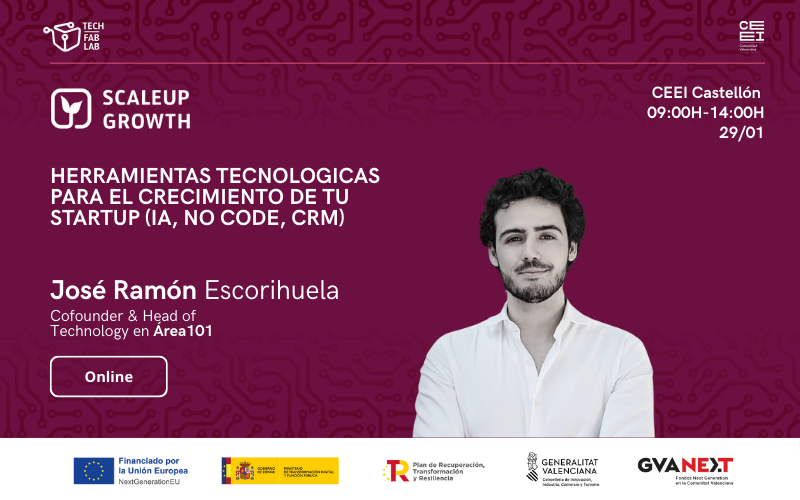 En esta sesión de ScaleUp Growth, José Ramón Escorihuela (Cofounder & Head of Technology en Area101) compartirá las claves para impulsar el crecimiento de tu startup con herramientas tecnológicas como IA, No Code y CRM. Veremos cómo integrar la IA para mejorar procesos y toma de decisiones, cuándo apostar por plataformas No Code y cómo un CRM puede ayudarte a convertir más y a escalar sin perder el control. Cerraremos con un ejercicio práctico para aplicar estas herramientas en procesos clave y optimizar operaciones con impacto real.