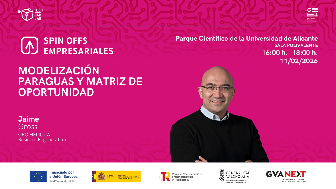 Spin offs Futurlabs está enmarcado en el programa Tech FabLab de la convocatoria RETECH “Redes de Emprendimiento Digital”, financiada por el Plan de Recuperación, Transformación y Resiliencia del Ministerio para la Transformación digital y Función Pública a través de fondos europeos Next Generation EU. Se trata de una de las actuaciones que la Dirección General de Innovación ha activado en colaboración con la Red CEEI CV con el objeto de capacitar en tecnologías habilitadoras digitales y dinamizar la creación y el crecimiento empresarial mediante la innovación.