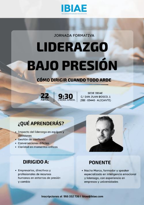IBIAE organiza la jornada formativa titulada “Liderazgo bajo presión: cómo dirigir cuando todo arde”, una sesión centrada en ofrecer herramientas prácticas para afrontar la toma de decisiones en situaciones complejas y de alta exigencia.