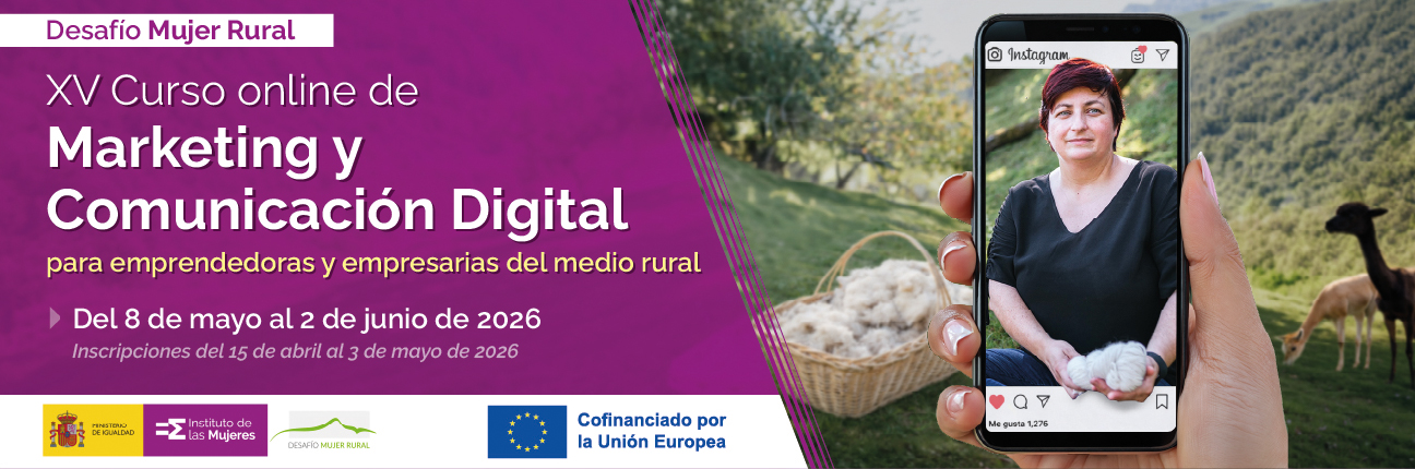 En el marco del programa Desafío Mujer Rural, del Instituto de las Mujeres y cofinanciado por el Fondo Social Europeo, se organiza la decimoquinta edición del curso online de Marketing y Comunicación Digital, una formación dirigida a emprendedoras y empresarias del medio rural con el objetivo de mejorar la visibilidad, comercialización e impulso de sus proyectos a través de herramientas digitales.