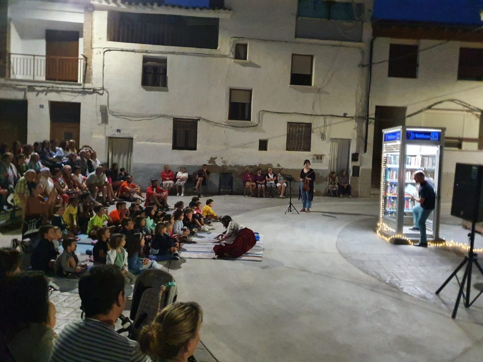 Se trata de una iniciativa que pretende impulsar la lectura y la cultura, dándole un nuevo uso a la cabina telefónica que se encuentra situada en la plaza. Para conseguir convertirla en una pequeña “biblioteca” se ha restaurado colocándole estanterías en la parte frontal de la cabina, para poder colocar los libros, tanto infantiles como juveniles y de adultos, principalmente con temática de ficción.