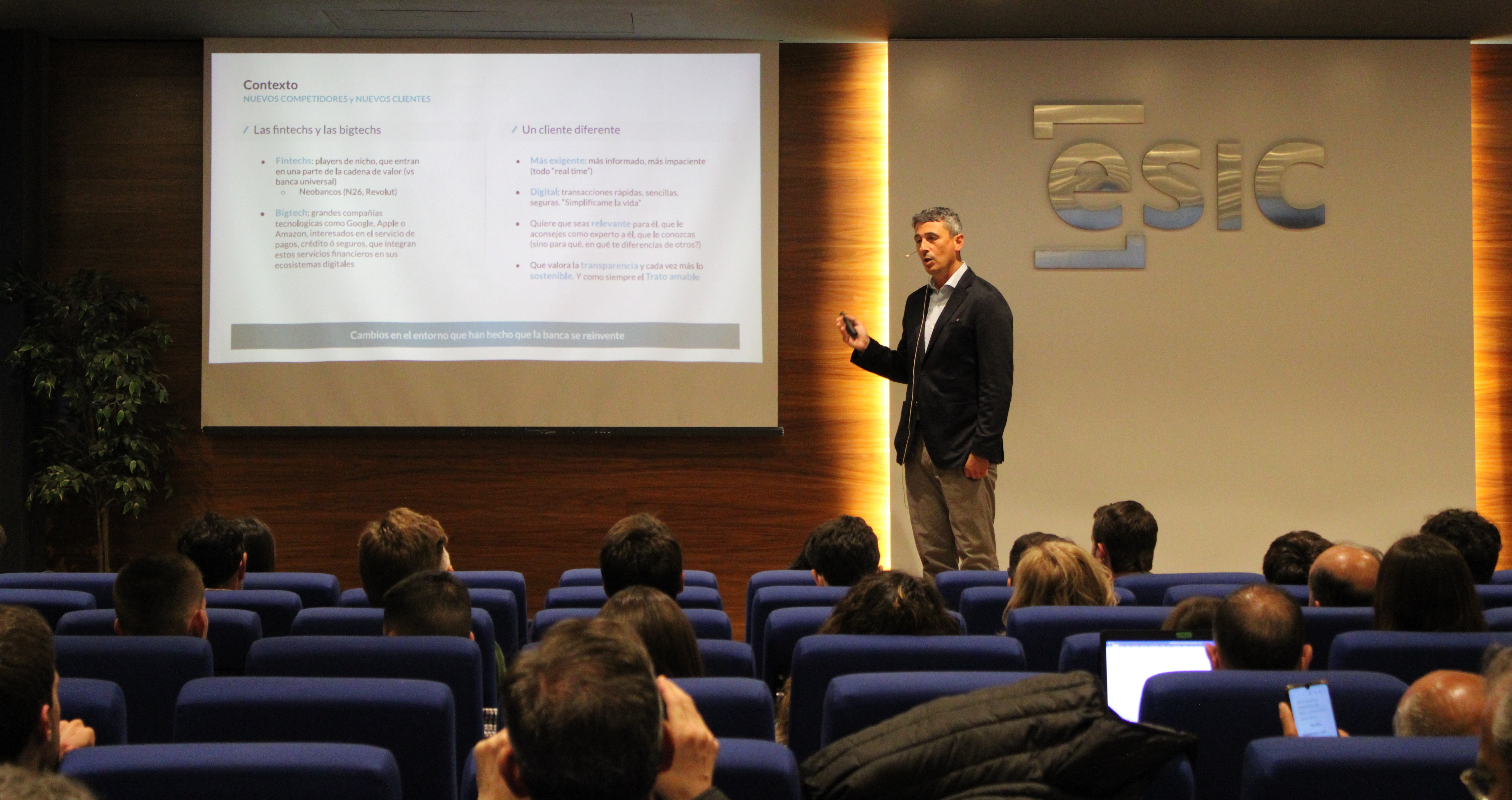 El primer encuentro de los E-Talks de ESIC València lo cerró Pedro Ramírez Villanueva, director de la zona Contigo en la Territorial Este de BBVA, con "BBVA: de la banca tradicional a la banca digital “.  Ramírez hizo un barrido por el recorrido del BBVA, demostrando la importancia de la evolución tecnológica.