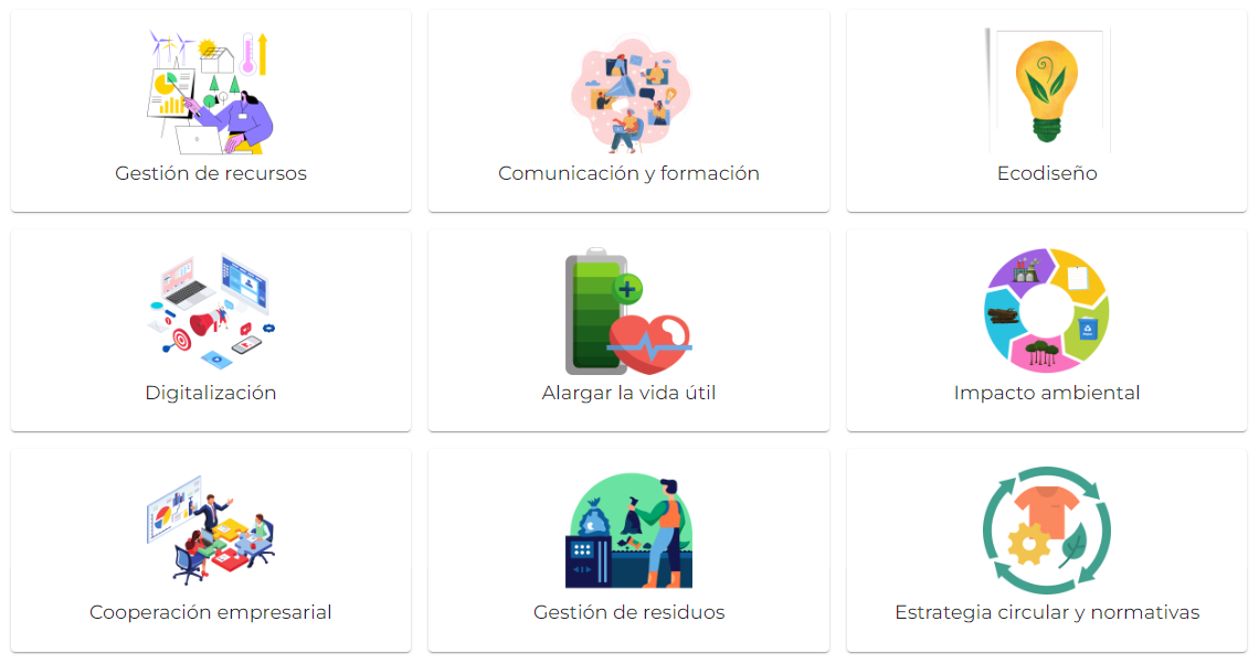 Con esta herramienta se quiere ayudar a las pymes a analizar las medidas de circularidad que se han adoptado dentro de sus empresas y, en función de las mismas, se ofrecen recomendaciones y propuestas para evolucionar hacia un modelo circular, eficaz y que pueda evolucionar en el tiempo.