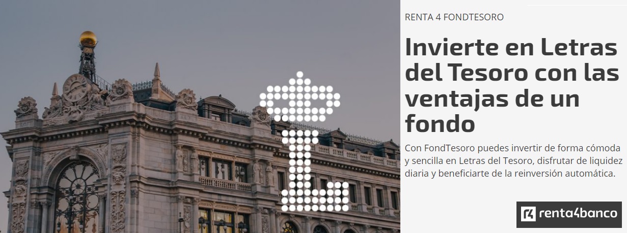 Renta 4 FondTesoro es un fondo de inversión de renta fija a corto plazo con inversión mayoritaria en deuda pública, principalmente Letras del Tesoro español. Permite a los inversores acceder a este tipo de productos con la garantía del Estado, mediante una contratación sencilla y un importe mínimo de entrada muy asequible e inferior al de las Letras.