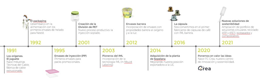 La trayectoria de ITC Packaging está marcada por la innovación. Nacida como empresa auxiliar de la industria juguetera, ITC ha ido evolucionando gracias a su apuesta por la reinvención y por el descubrimiento de nuevos nichos de mercado que han supuesto gran parte del éxito de la compañía.