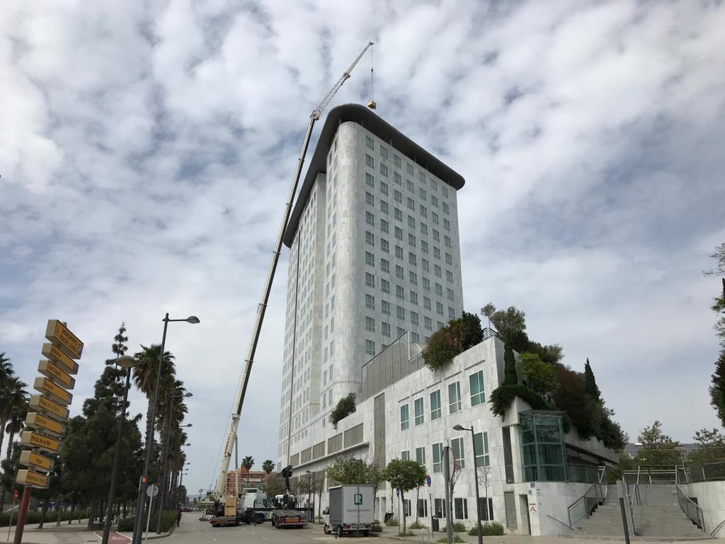 Montaje de aire acondicionado en cubierta en Hotel Sorolla con nuestra Terex Explorer 5800.