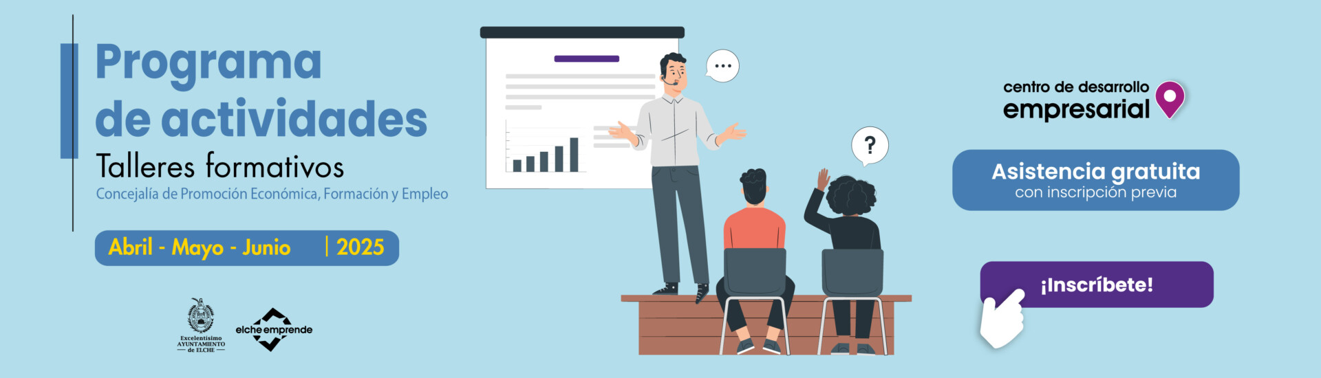 El programa comienza el próximo 2 de Abril y las acciones durarán hasta el 17 de junio, con varias actividades en abril, mayo y junio. Los interesados ya pueden inscribirse desde el portal web del Centro de Desarrollo Empresarial de Elche.