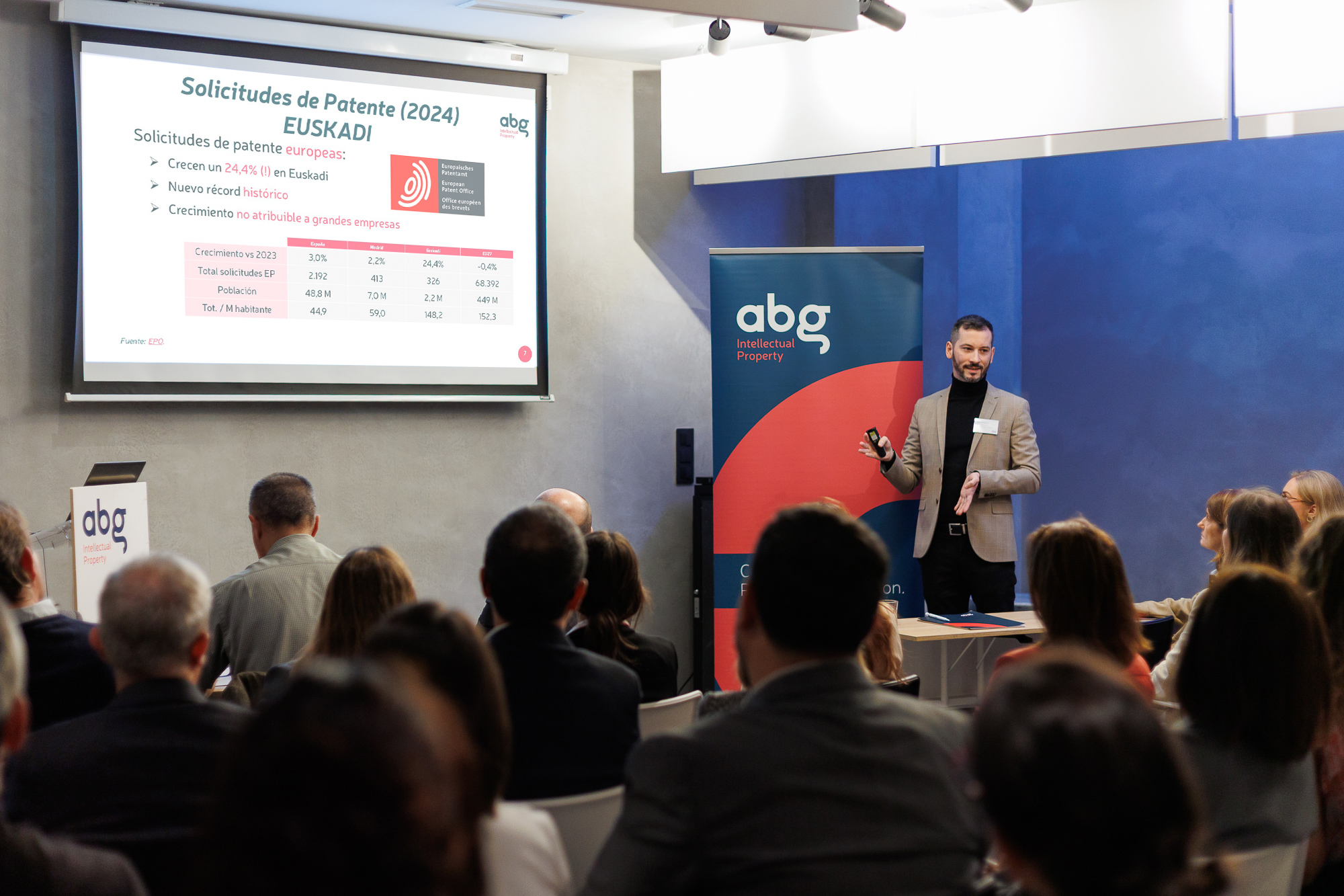 Cada vez más empresas y centros de investigación vascos entienden la propiedad industrial no como un trámite, sino como una herramienta estratégica para competir y crecer”, destacó Juan Arias, socio director de ABG Intellectual Property, durante la inauguración del encuentro.