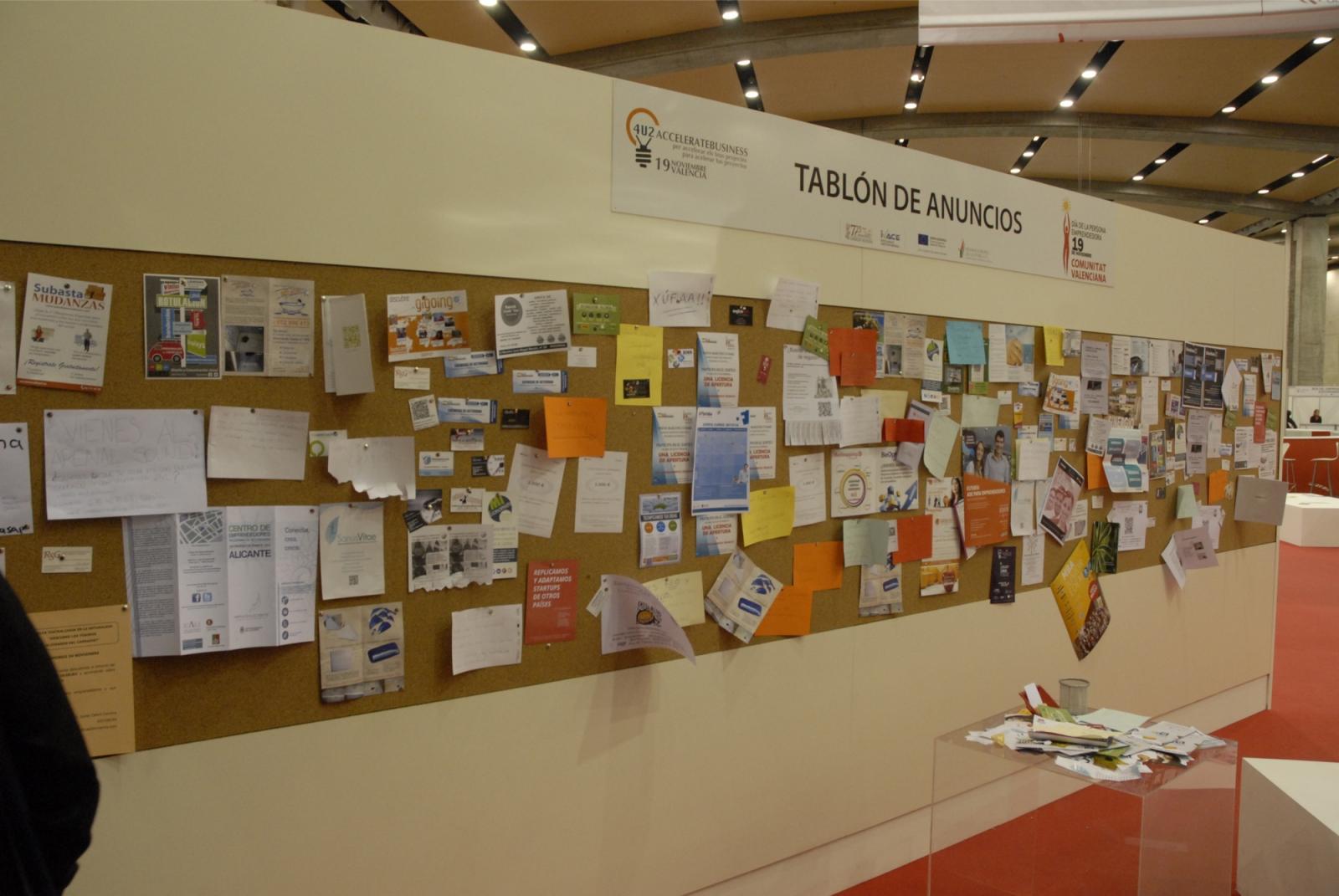 Networking es una de las prioridades del Día de la Persona Emprendedora y presenta diferentes manifestaciones a lo largo de la Macrojornada, en el que se incluye un Tablón de anuncios en el Centro del Pabellón.