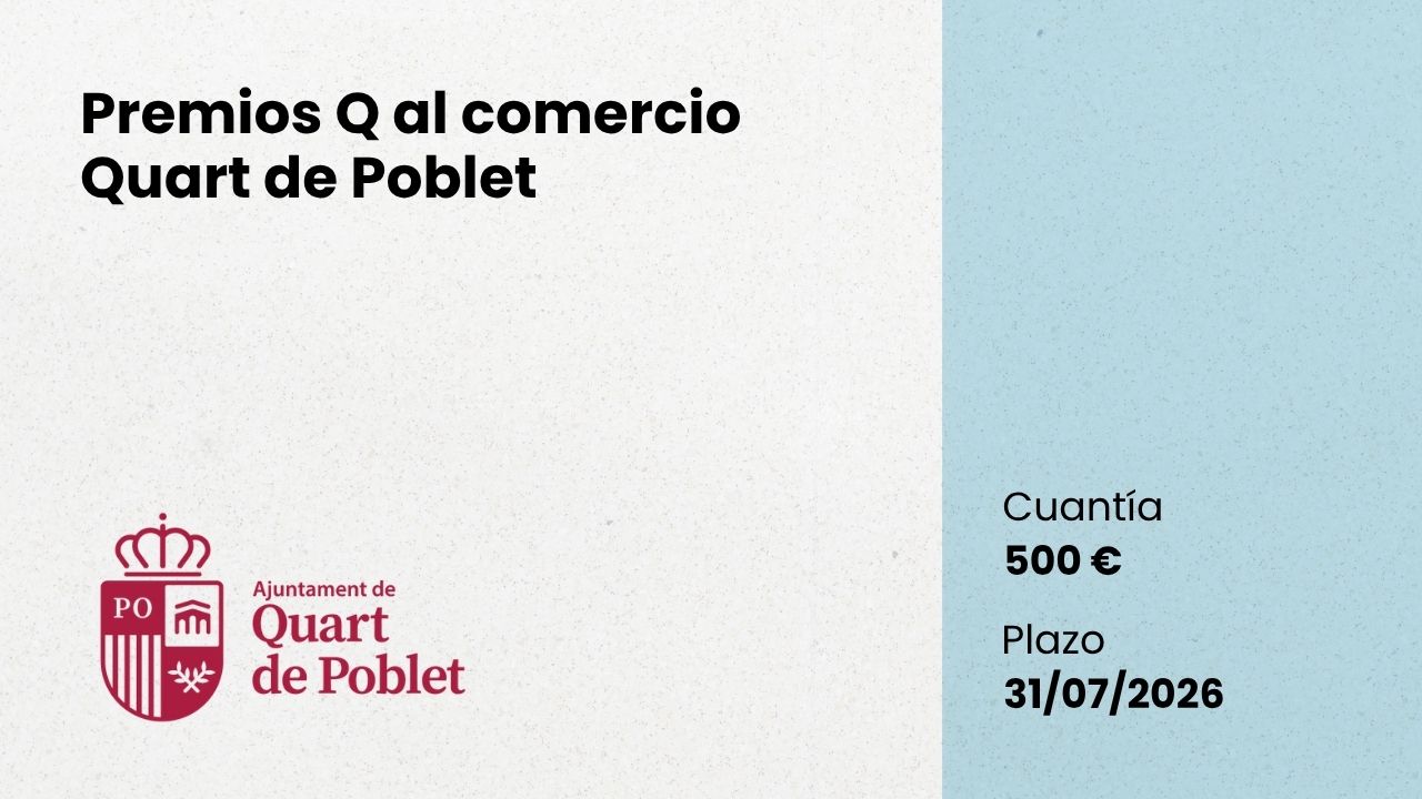 Podrán concurrir a la convocatoria correspondiente todos aquellos comercios o servicios con domicilio social en Quart de Poblet.