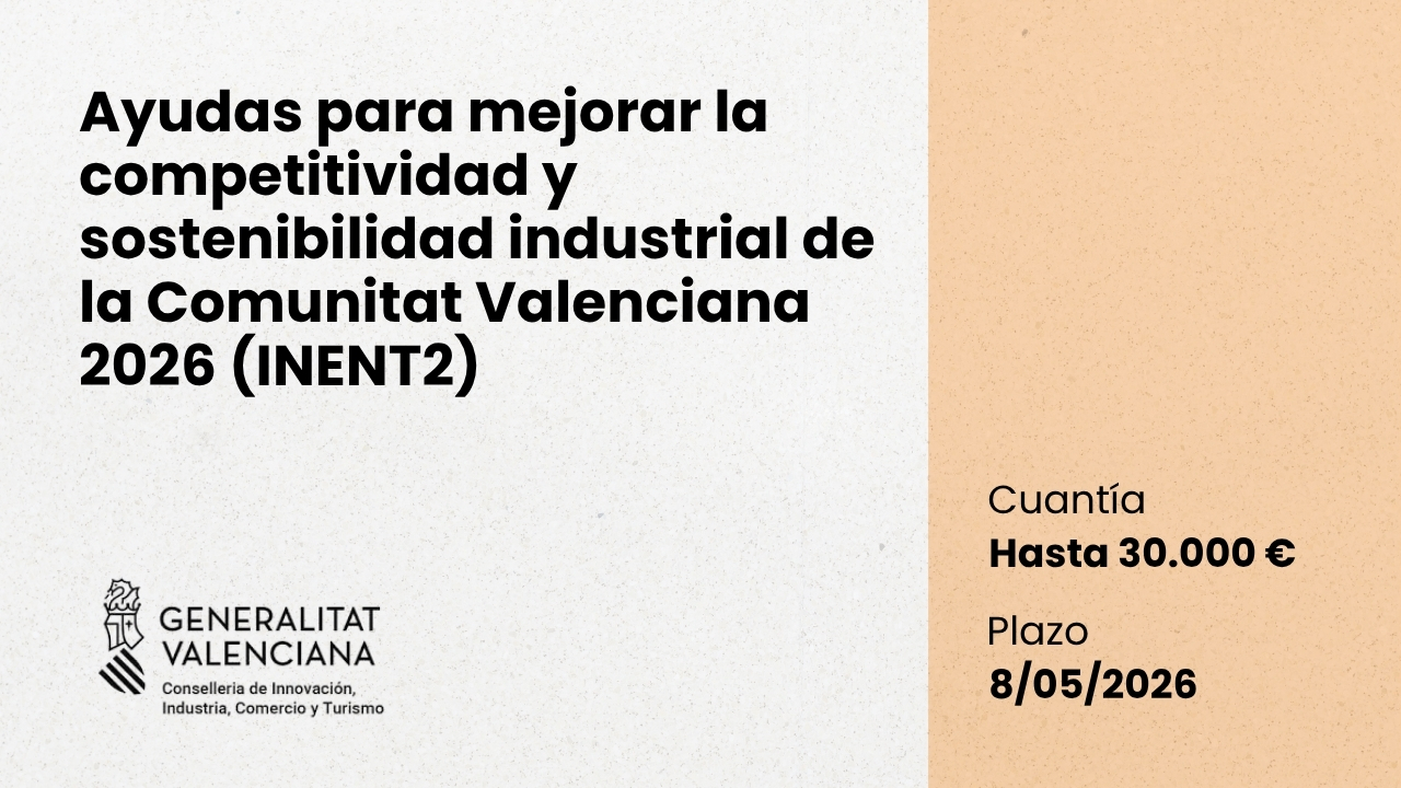 Ayudas para mejorar la competitividad y sostenibilidad industrial de la Comunitat Valenciana (INENT2) 2026