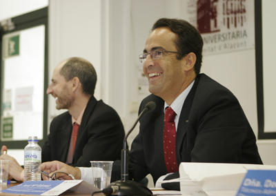 Risas en el Taller de Networking Emprendedores. José María Gómez Gras y Domingo Galiana Lapera (UMH).