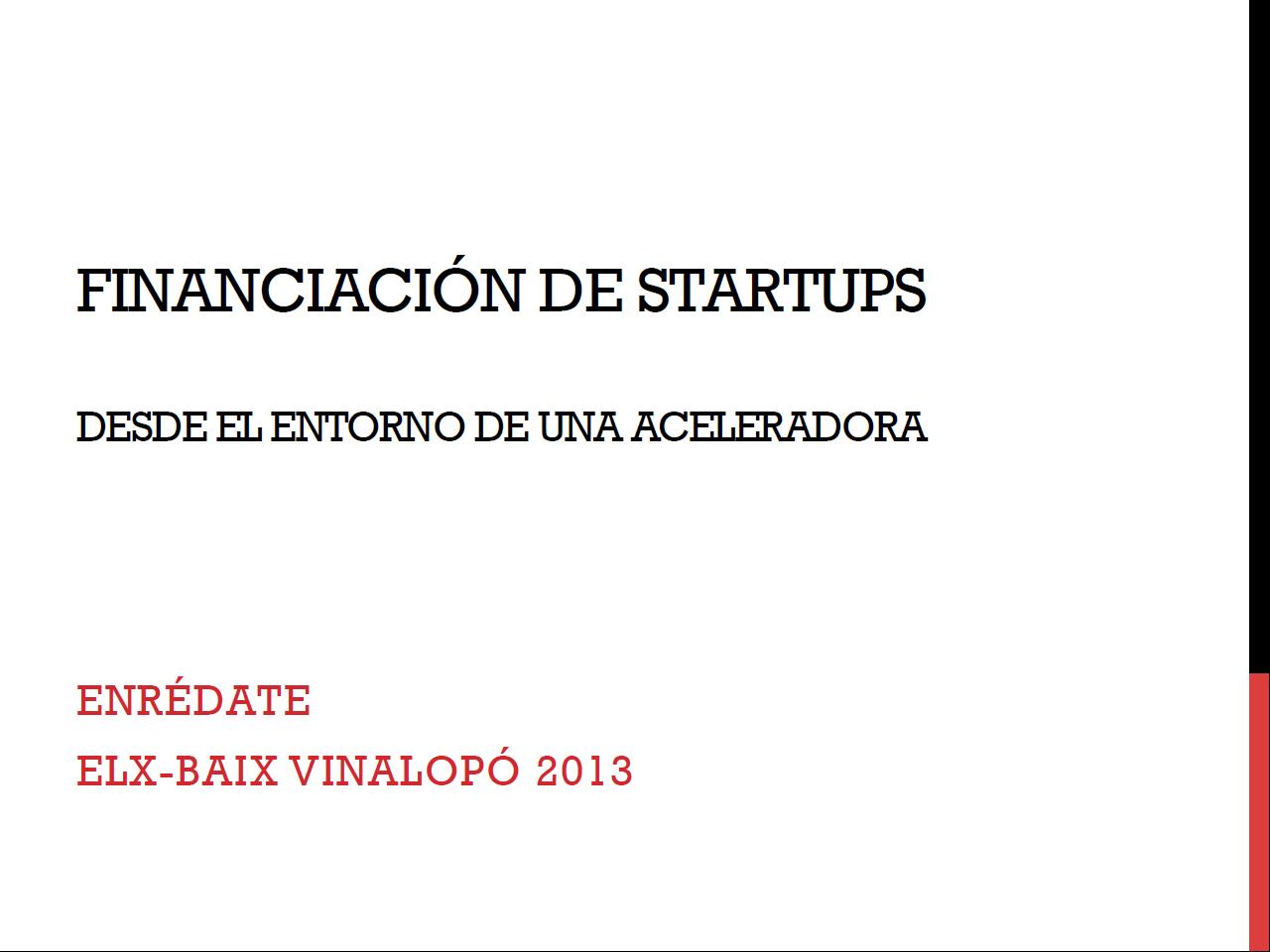 Financiación de Startups DESDE EL ENTORNO DE UNA ACELERADORA