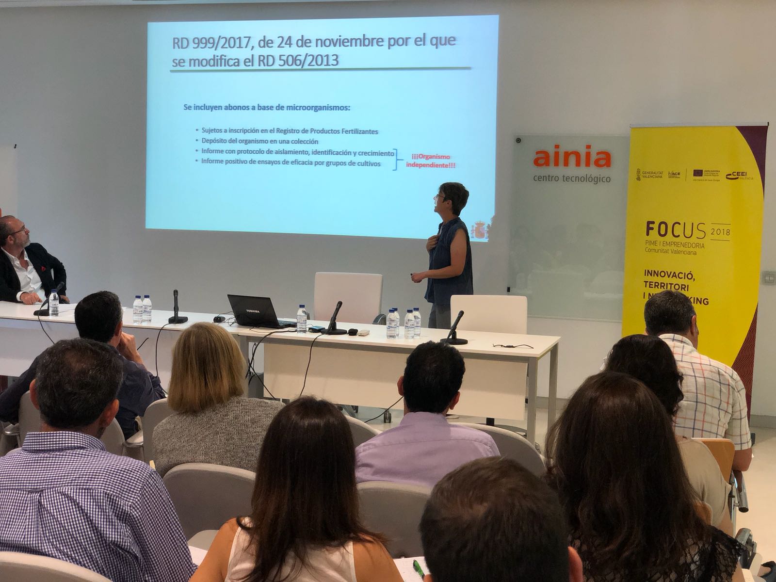 Encuentro Focus Pyme y Emprendimiento "Oportunidades agroalimentarias el papel de la biotecnología", celebrado en el Salón de Actos de AINIA con el objetivo de generar un foro de discusión y de networking sobre cómo la biotecnología contribuye a mejorar sus productos, procesos y servicios. Organizado por el clúster BIO valenciano BIOVAL y AINIA, en colaboración con el CEEI Valencia, IATA, IVIA e Idai Nature.