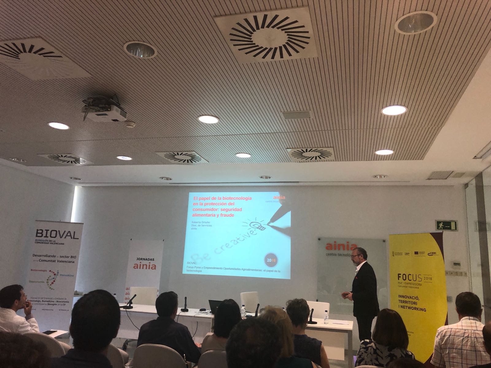 Encuentro Focus Pyme y Emprendimiento "Oportunidades agroalimentarias el papel de la biotecnología", celebrado en el Salón de Actos de AINIA con el objetivo de generar un foro de discusión y de networking sobre cómo la biotecnología contribuye a mejorar sus productos, procesos y servicios. Organizado por el clúster BIO valenciano BIOVAL y AINIA, en colaboración con el CEEI Valencia, IATA, IVIA e Idai Nature.