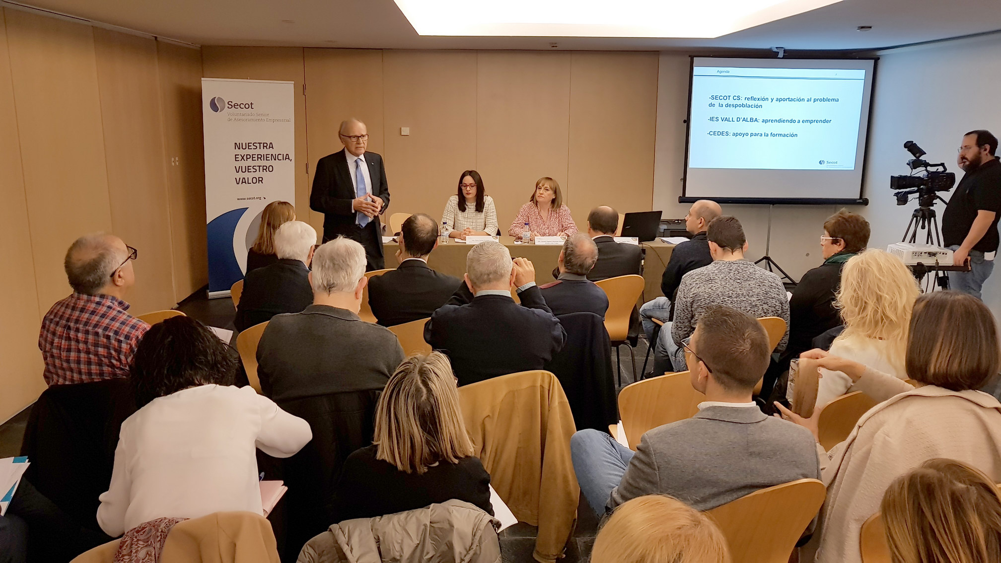 En la mesa, además de Vicente Nebot de Secot Castellón, participaron Dolores Eugenia Delcampo Montañés, del IES de la Vall d´Alba y Elena Esteve Fortaner, en representación de los centros CEDES de la Diputación Provincial que expusieron su papel fundamental como dinamizadores del territorio.