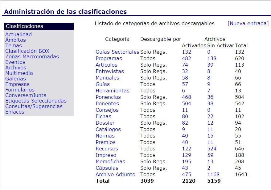 Ahora nos planteamos la clasificación de los archivos de descarga, que son registros con carecterísticas especiales y a los que conviene tambien clasificar por su contenido, alcance o/y formato de presentación.