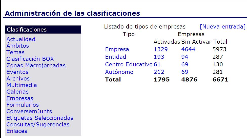 Ahora nos planteamos la clasificación de las entidades/empresas, que son registros con carecterísticas especiales y a los que conviene tambien clasificar por sus peculiaridades.